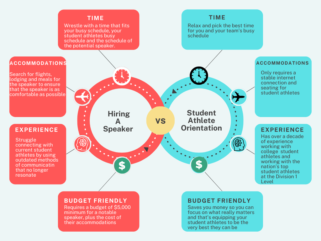 I have to admit. No matter how much this course is, the value and the meaningful conversations that will follow it is worth its weight in gold. The strategies were hand picked from not only my own life experience as being a student athlete but also working with top student athletes both at the Power 5 Division 1 Level but also at the top level of of high school age student athletes. But not all of the information is brand new! And it shouldn't have to be. The fact of the matter is, if you're a coach or a student athlete advisor or support staff; and you're reading this, I know 2 things about you that you haven't even told me! 1. You care | Thank you. Your thoughtfulness for student athletes beyond just a Win & Loss does not go unnoticed. 2. You've said some of the same things to your student athletes already! | The problem however is , that your proximity is working against you. Since they see you on a regular basis and are used to seeing you, day in and day out; it's easy for your words to fall short of their ears because it's only natural to tune out from time to time when listening to the same person for majority of the information. It would be no different than a parent telling their child the same thing over and over for year; thinking that their kid was listening and all of sudden the kid burst in the door telling them some information they heard from the UPS Guy; and its the same thing they've been telling them for years! I know it can be frustrating but the question you have to ask yourself is "Is it important that the student athlete gets the information or is more important that they get the information from you?" I can't answer that question for you but I can say that this course is for those that are more concerned with the student athlete getting the information ; regardless of who gets the credit.